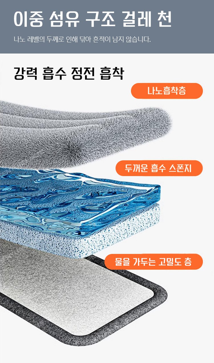45cm 대형 걸레, 1분 만에 30평 거실을 쉽게 청소할 수 있어 일반 걸레보다 10배 더 빠릅니다.